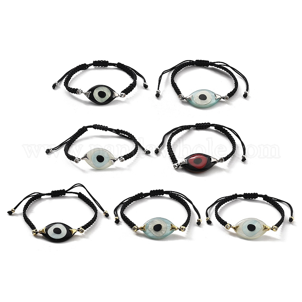 Браслеты из акриловых звеньев от сглаза, вощеные нейлоновые регулируемые браслеты для парной дружбы, с медью и фианитом, стойки покрытие, долговечный, без кадмия и без свинца