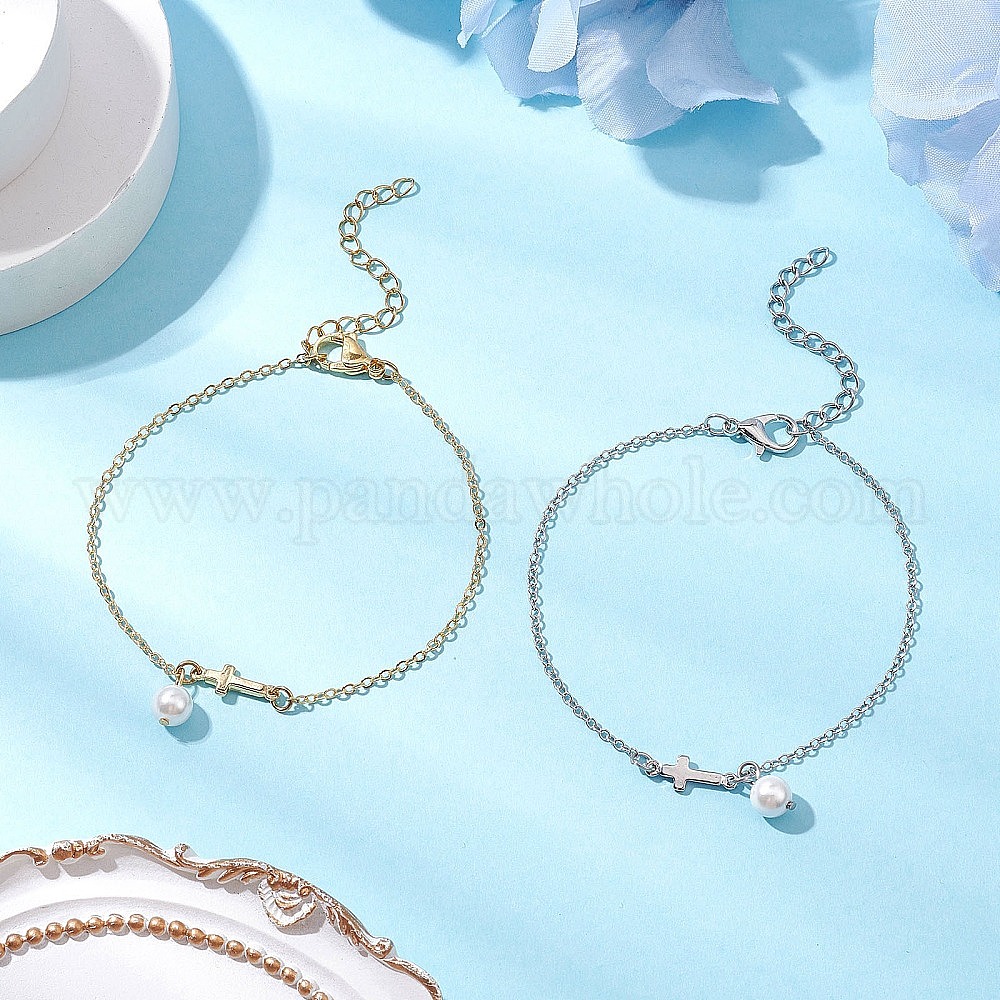 Латунные кабельные цепи браслеты, браслеты с поперечными связями для женщин, с жемчугом из раковины