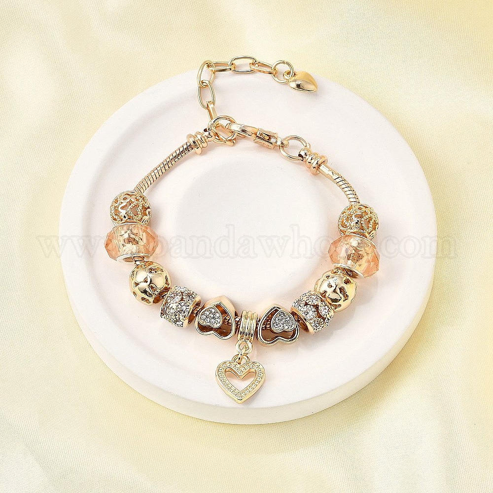 Сплав европейские бусины браслеты с подвесками, браслеты из змеиной цепи для женщин, сердце, смолой и горный хрусталь, без свинца и без кадмия