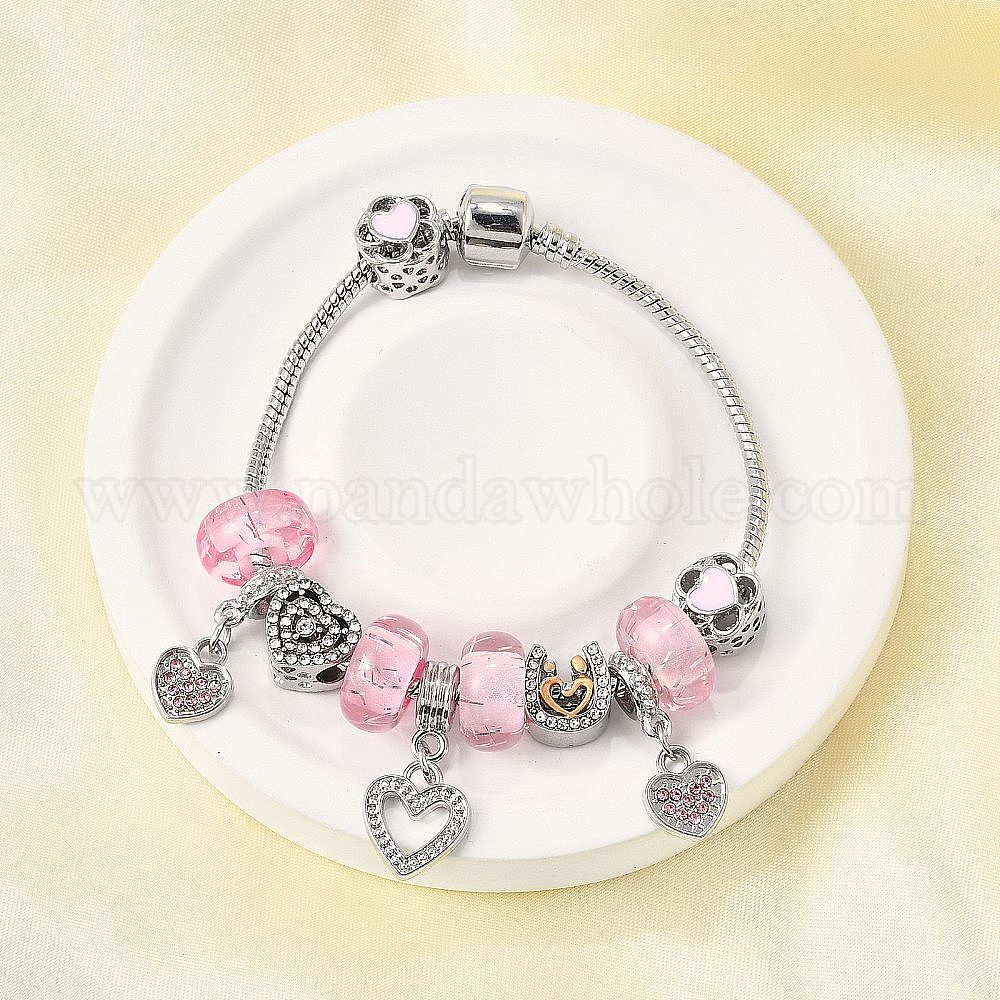 Сплав эмаль европейские бусины браслеты с подвесками, браслеты из змеиной цепи для женщин, сердце, смолой и горный хрусталь, без свинца и без кадмия