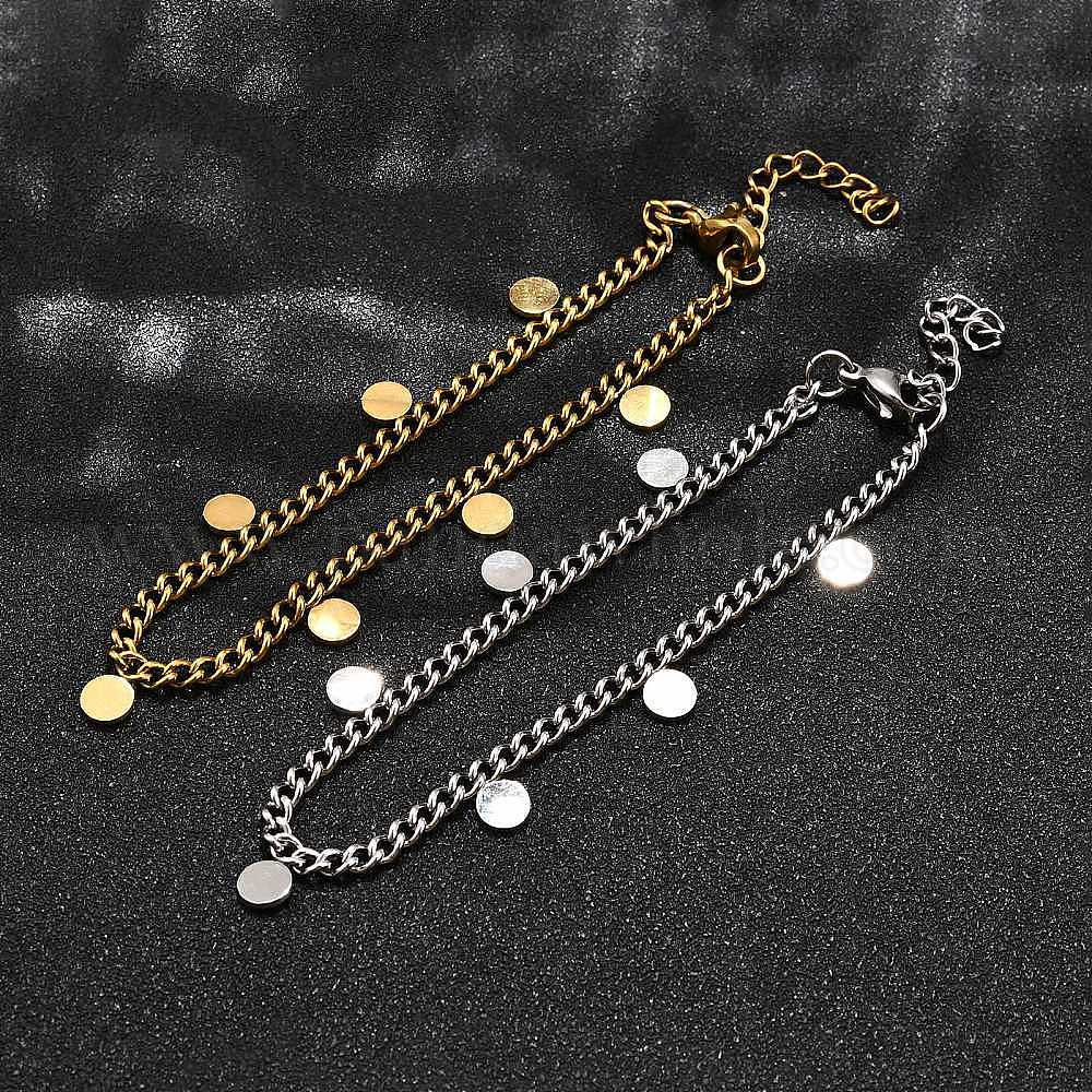 304 из нержавеющей стали плоские круглые шарм браслеты, браслеты с цепочками для женщин