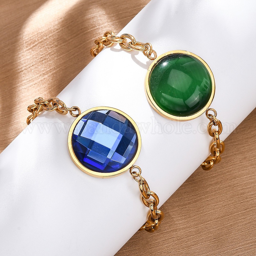 304 из нержавеющей стали плоские круглые браслеты ссылка, браслеты-цепочки для женщин, ионное покрытие (ip), золотые
