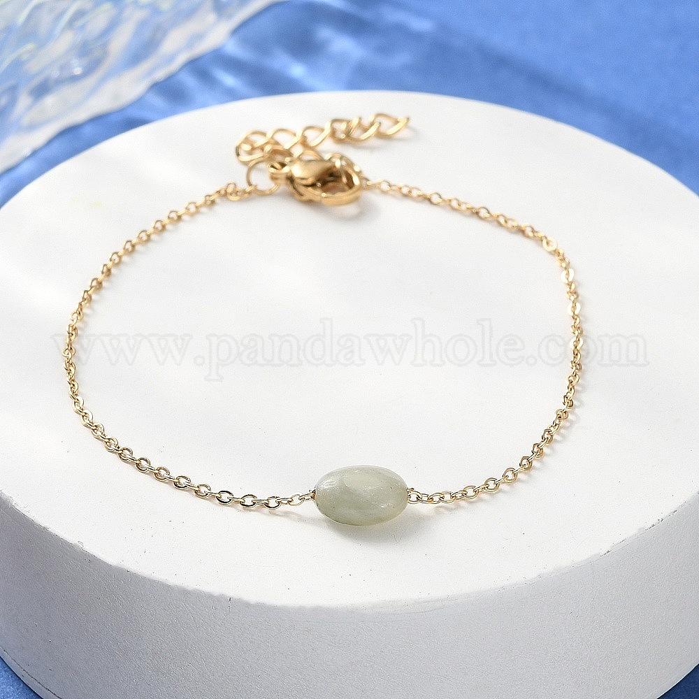 304 браслеты из бусин из натурального нефрита из нержавеющей стали, браслеты-цепочки для женщин, ионное покрытие (ip), золотые