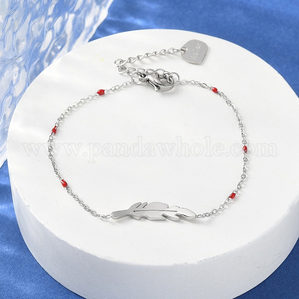 304 браслеты из нержавеющей стали с перьевыми звеньями для женщин, с эмалью