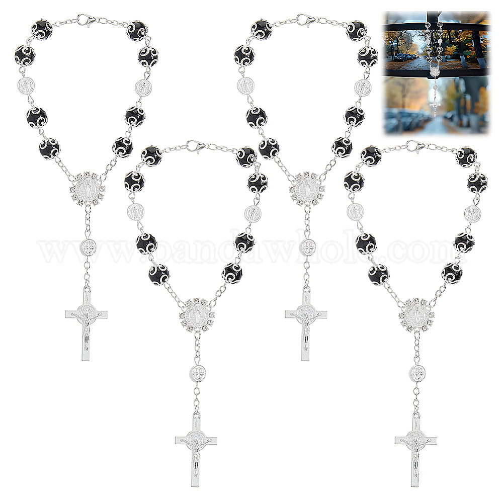 4шт. браслеты из сплава с подвесками в виде креста и Иисуса, круглые браслеты из стеклянных бусин для женщин
