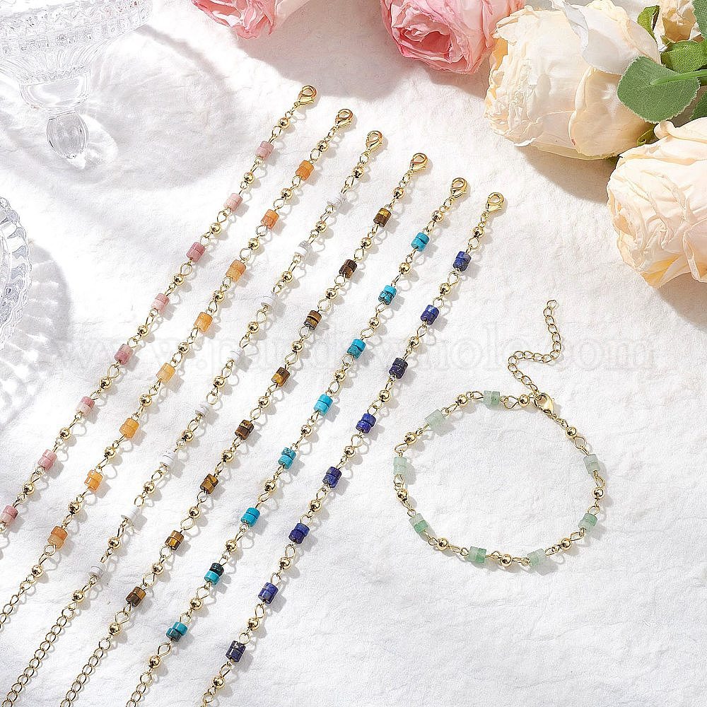 304 Браслеты из нержавеющей стали с натуральными драгоценными камнями для женщин, плоско-круглые, золотые