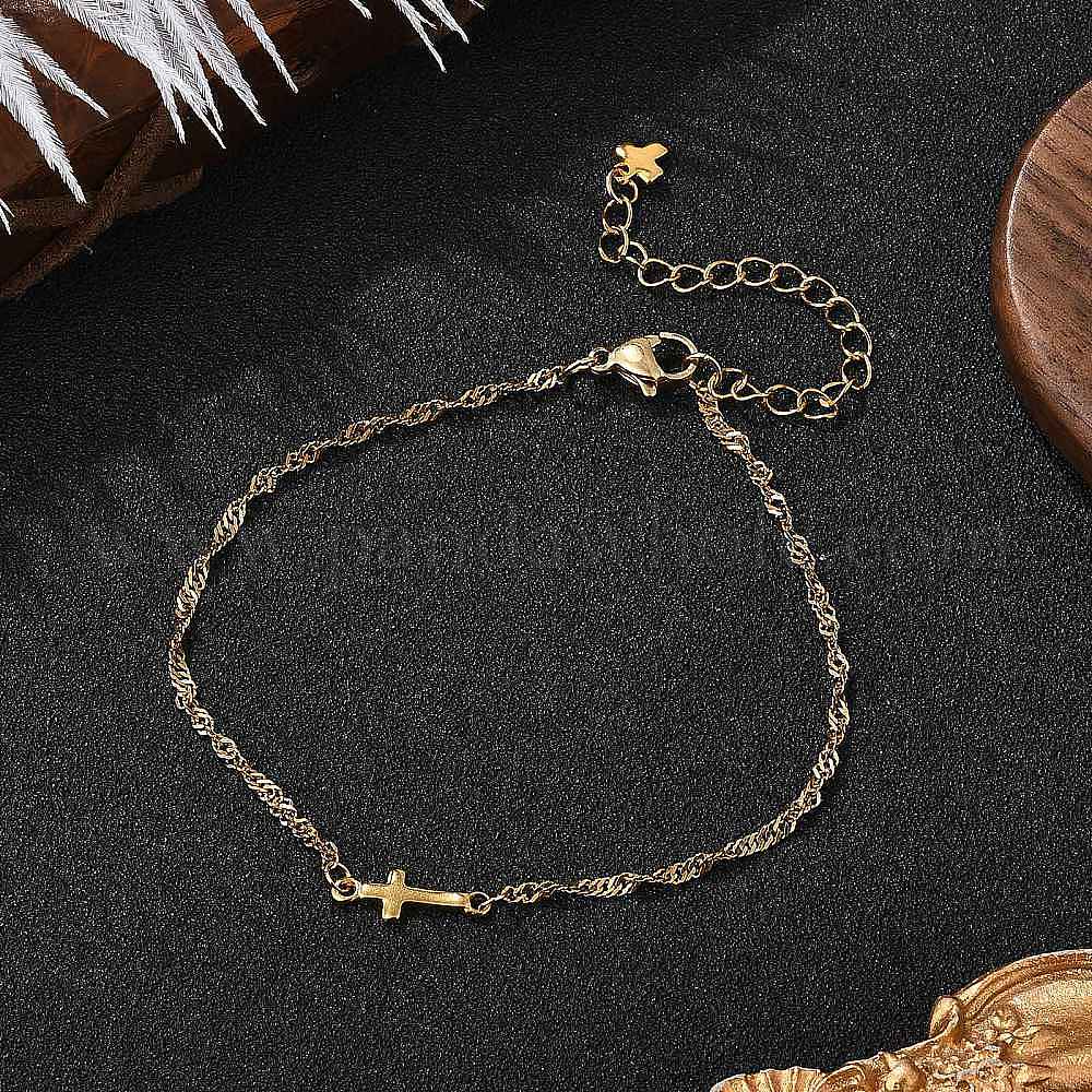 304 из нержавеющей стали крест ссылка браслеты, сингапурские цепи браслеты, с 304 из нержавеющей стали Lobster Claw застежками