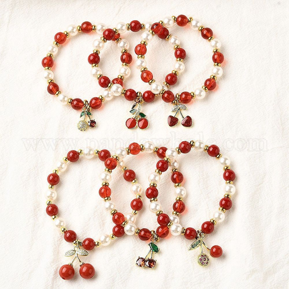 Браслеты из латунных пластиковых бусин, вишня, вакуумное покрытие pvd