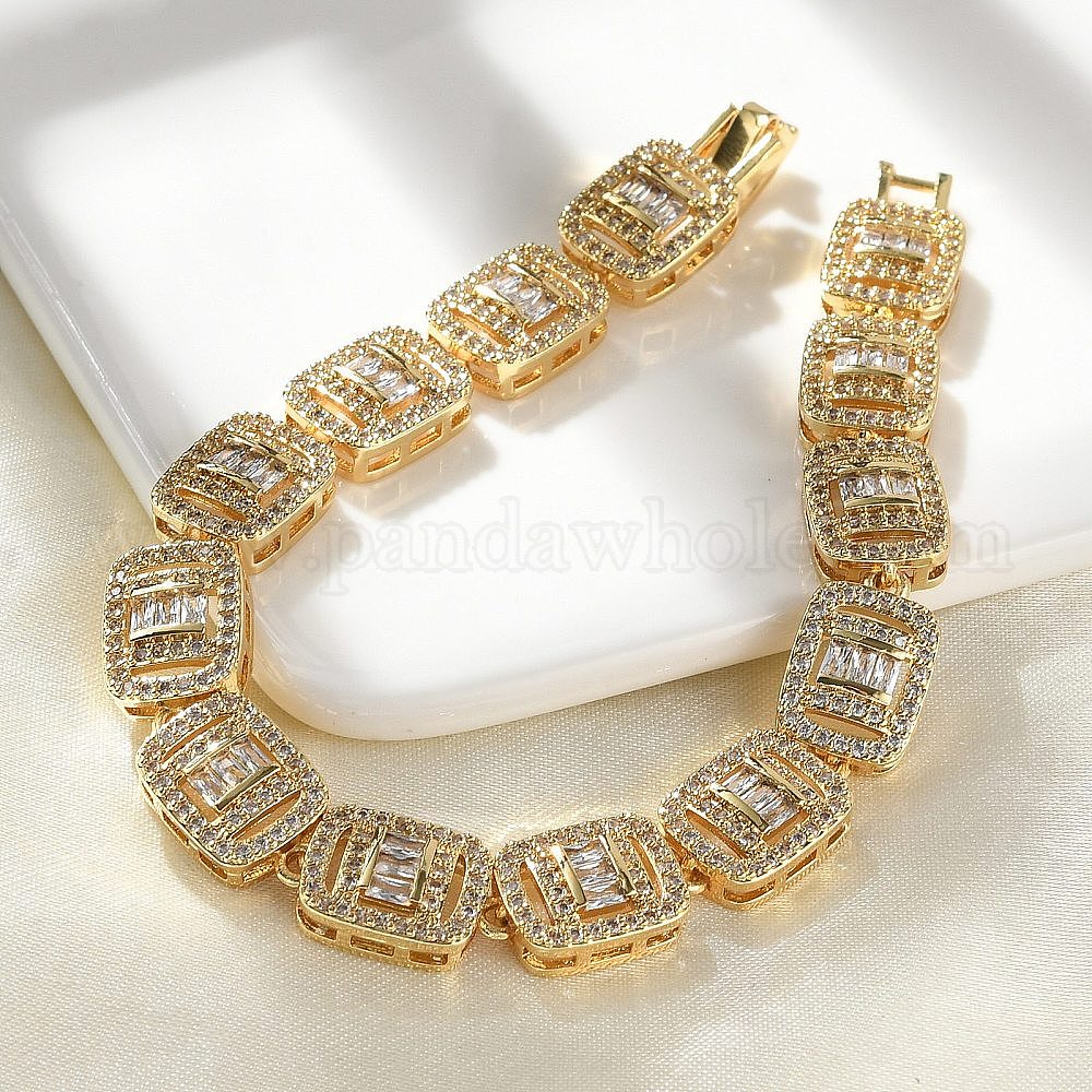 Латунные прямоугольные звенья с микропаве из прозрачного кубического циркония для женщин, стойки покрытие, долговечный, без кадмия и без свинца