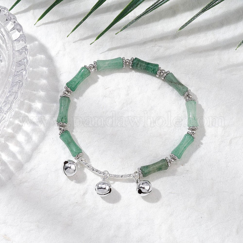 Браслеты с подвесками из натурального зеленого авантюрина для мужчин и женщин, бамбук, с латунным колокольчиком