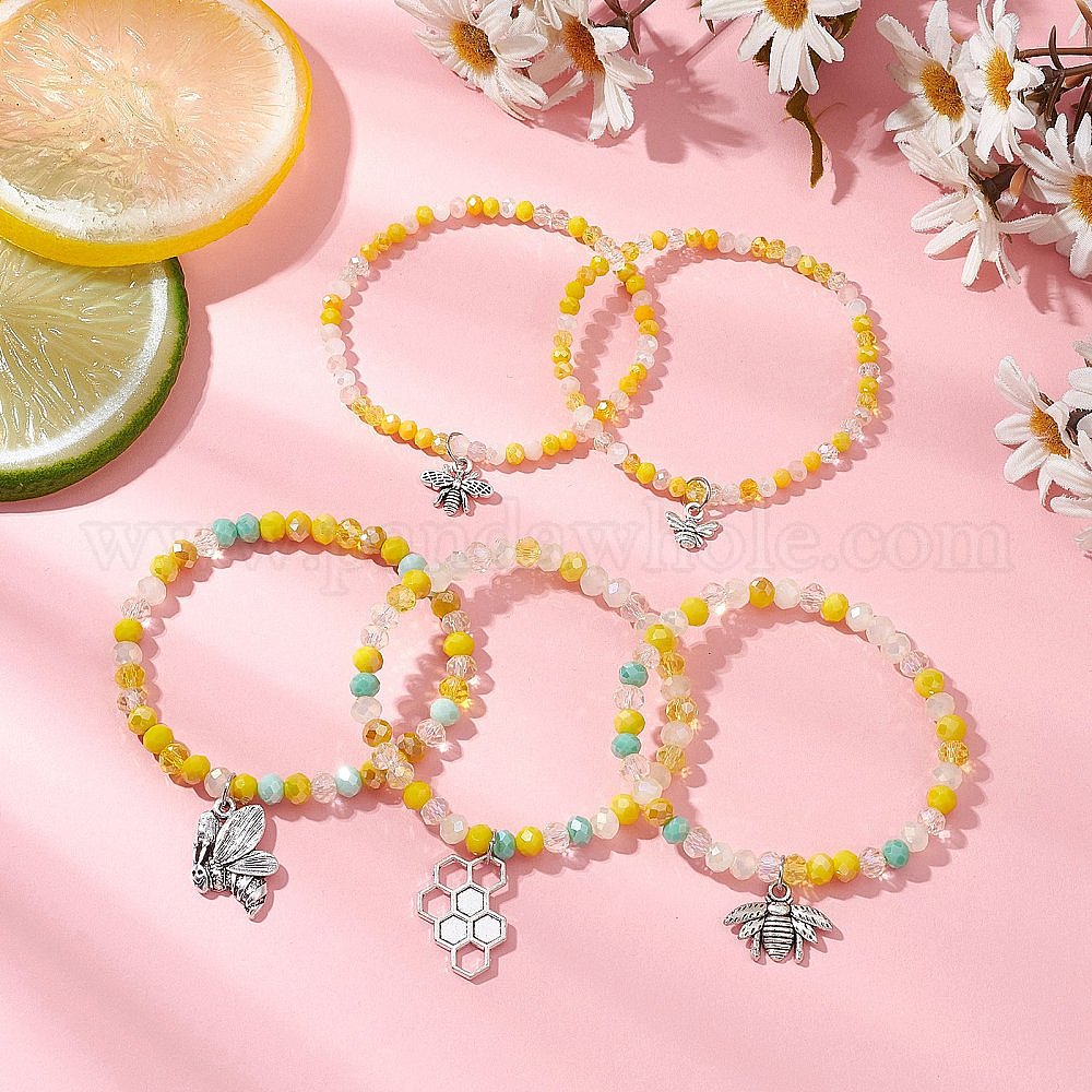 5шт. браслеты с подвесками в виде пчел из сплава, браслеты из граненых стеклянных бусин для женщин