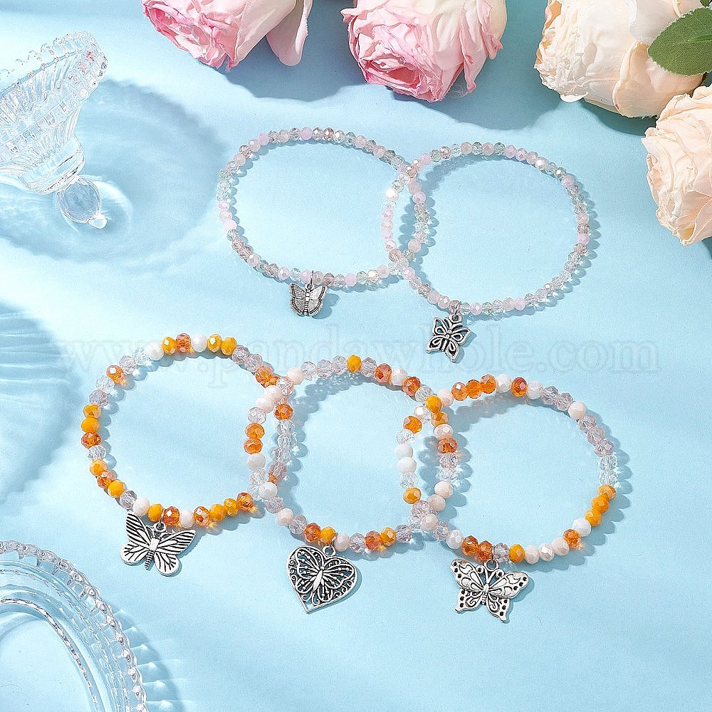 5шт. браслеты с подвесками в виде бабочек из сплава, браслеты из граненых стеклянных бусин для женщин