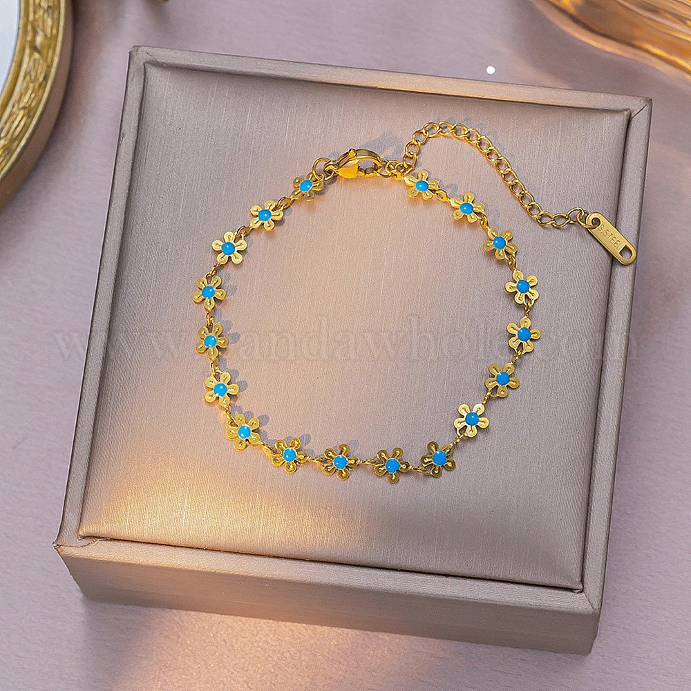 • Золотой Цветок 304 браслеты из нержавеющей стали с эмалированными звеньями для женщин, золотые, 7-1/8 дюйм (18 см)