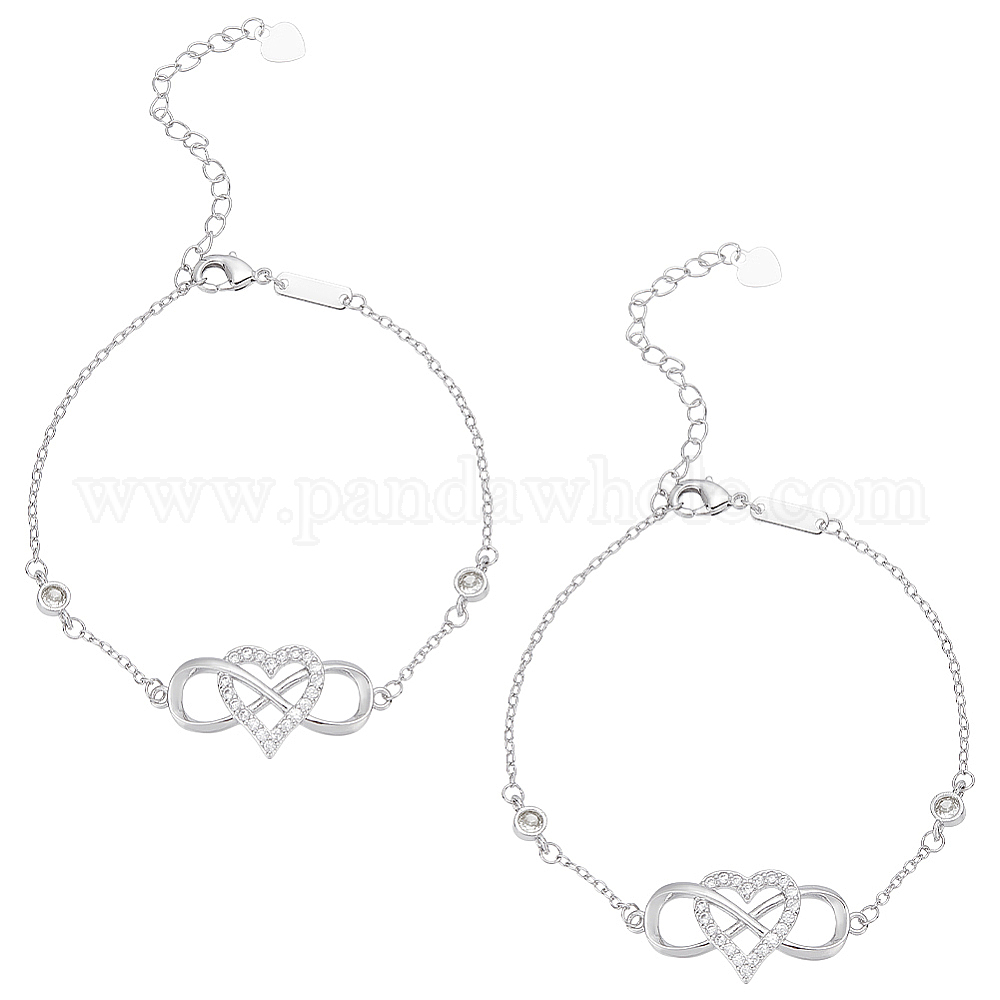 2шт. латунные браслеты с сердечками бесконечности, плоские круглые браслеты из кубического циркония для женщин