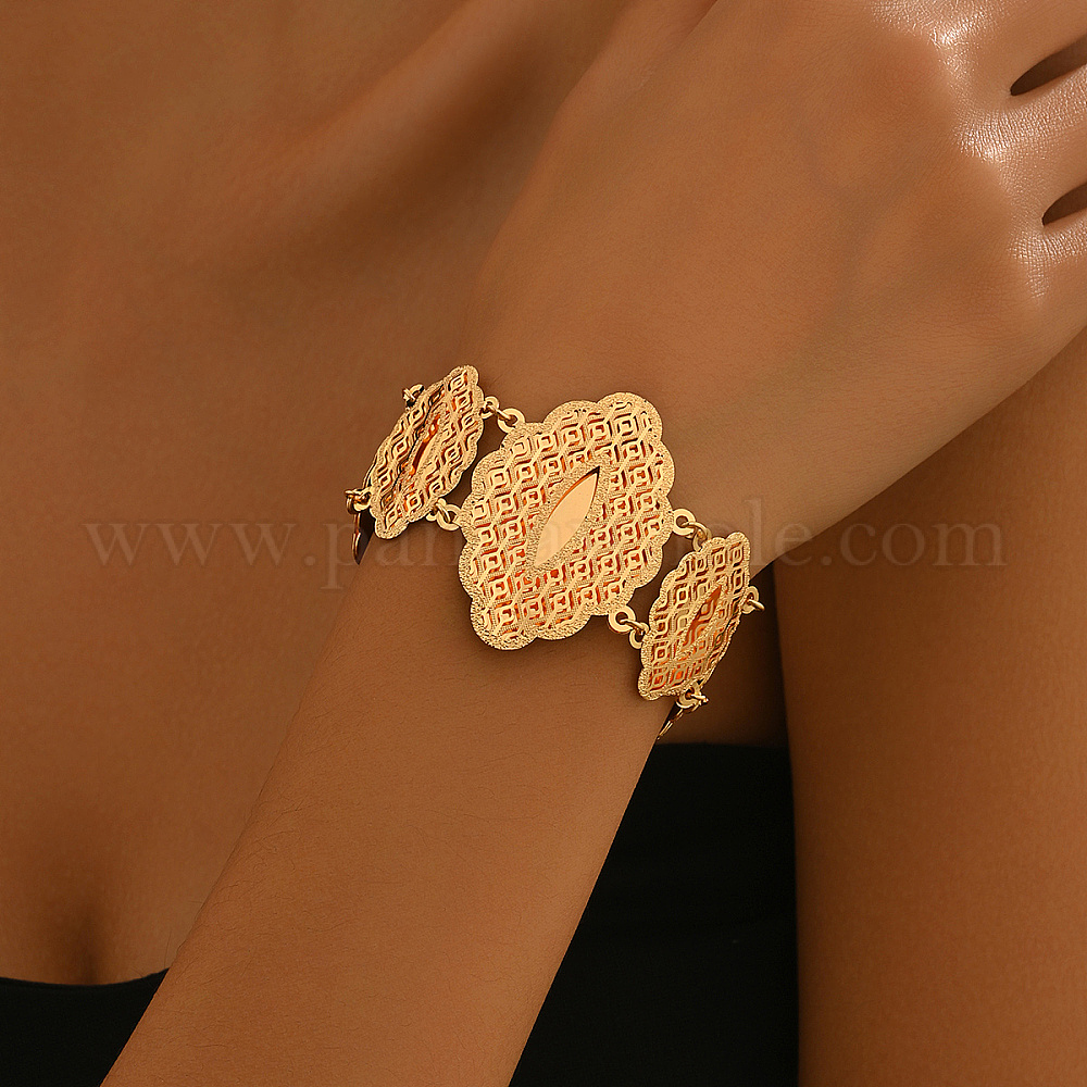 Элегантные латунные браслеты с цветочными звеньями для женщин