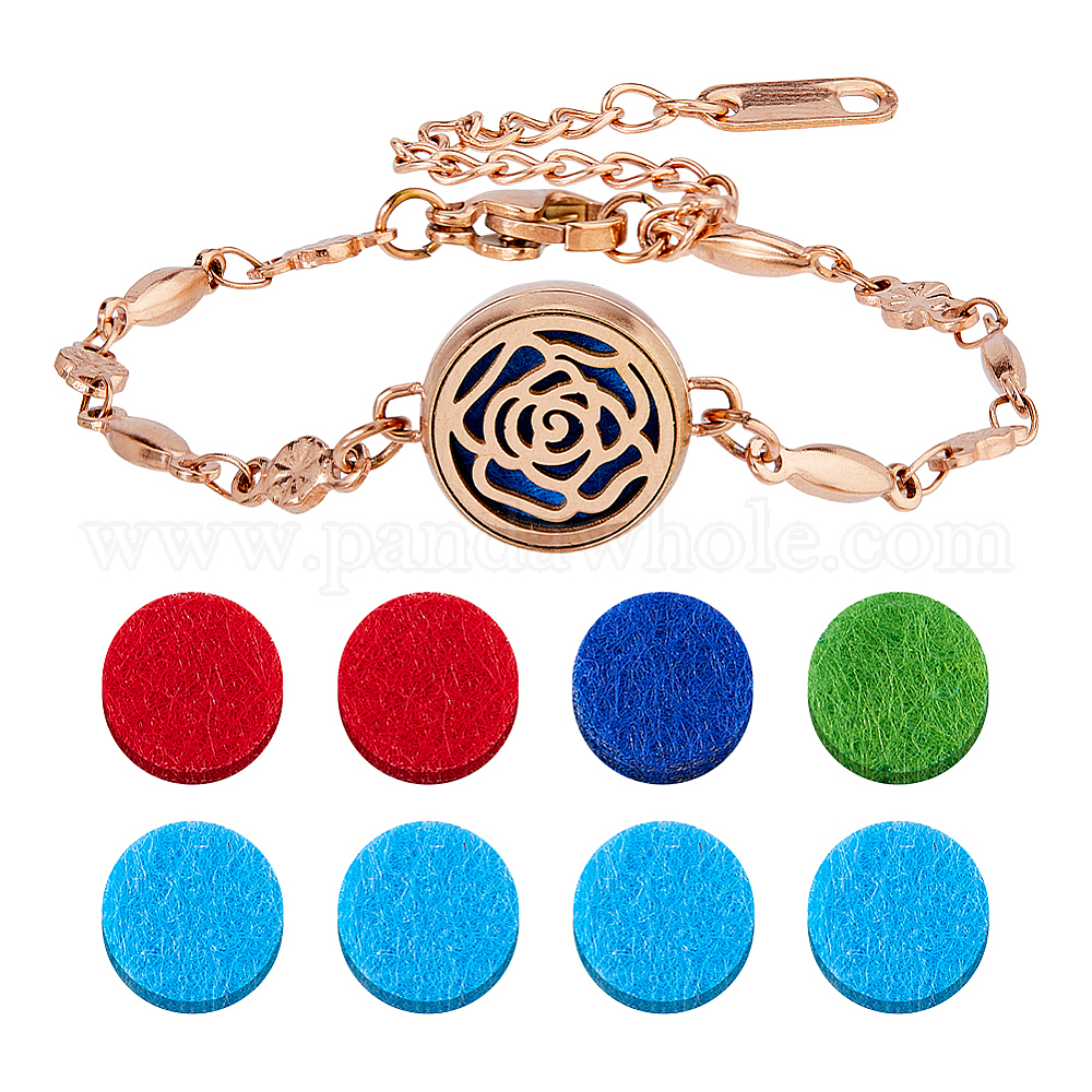 1набор 1цветов браслеты из нержавеющей стали с овальными звеньями, браслеты с диффузором эфирных масел для женщин, плоский круг с розовым кустом, с парфюмерными подушечками