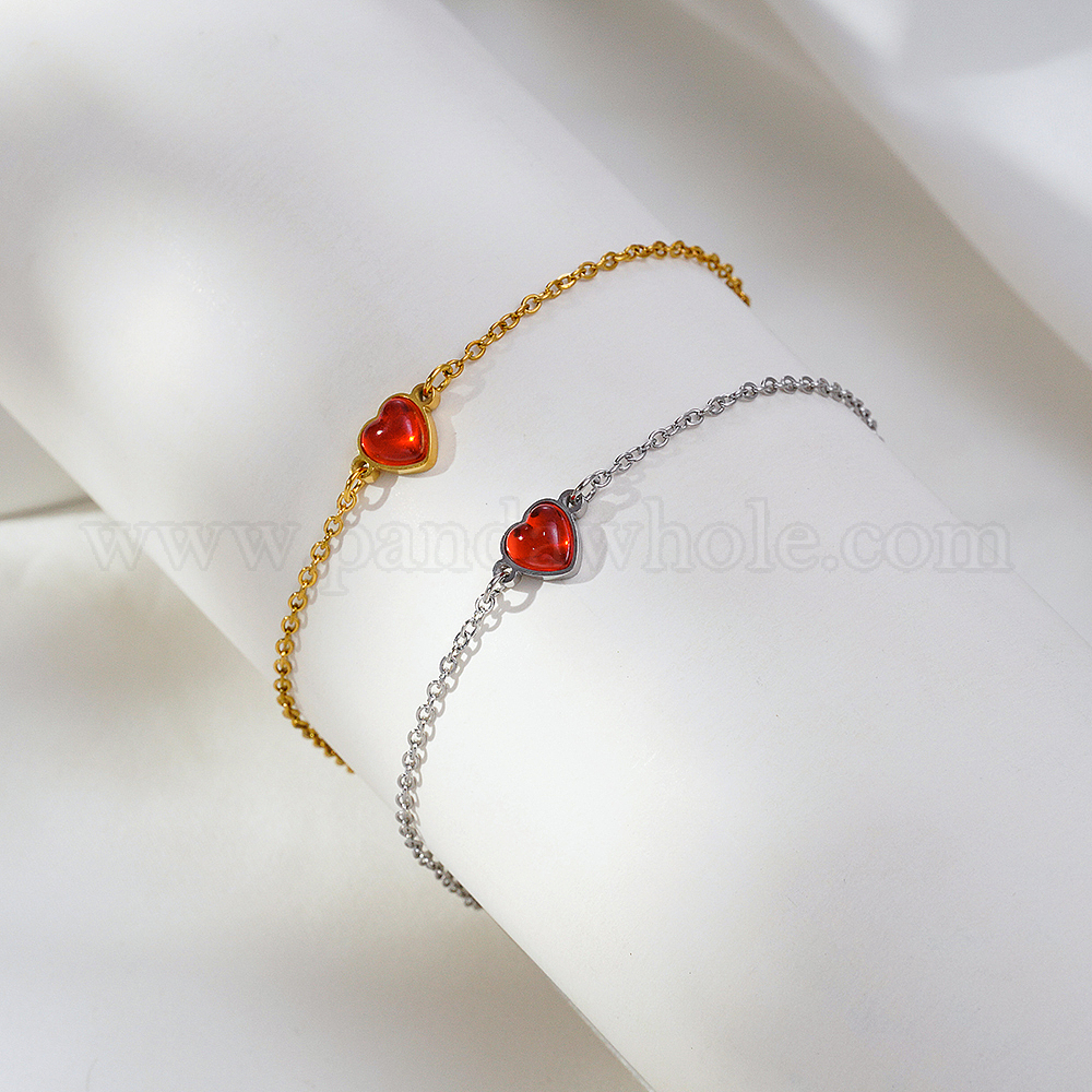 Стильные браслеты из нержавеющей стали с красными сердечками, ювелирные изделия из кабельной цепи для женщин