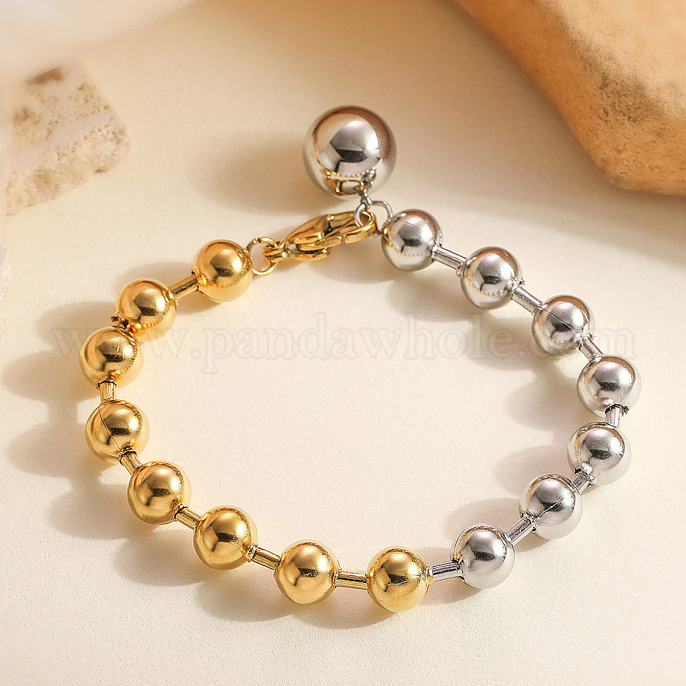 • Золотой & Цвет Нержавеющей Стали 304 из нержавеющей стали вышитый бисером браслеты, шарм браслеты, круглые, золотые и нержавеющая сталь цвет, 7-1/2 дюйм (19.2 см)