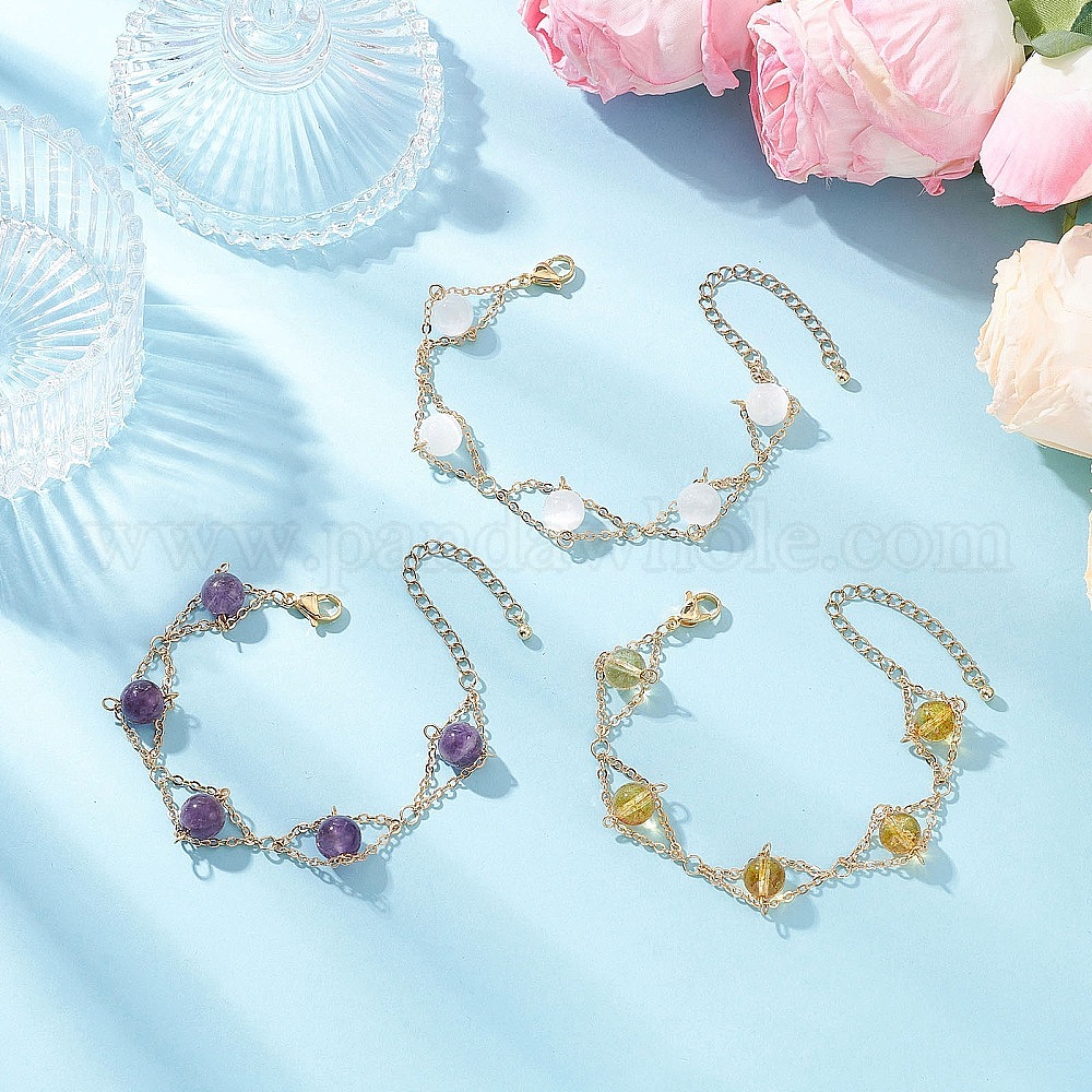 3шт. браслеты из круглых бусин из натуральных драгоценных камней для женщин, с 304 нержавеющей сталью и латунью