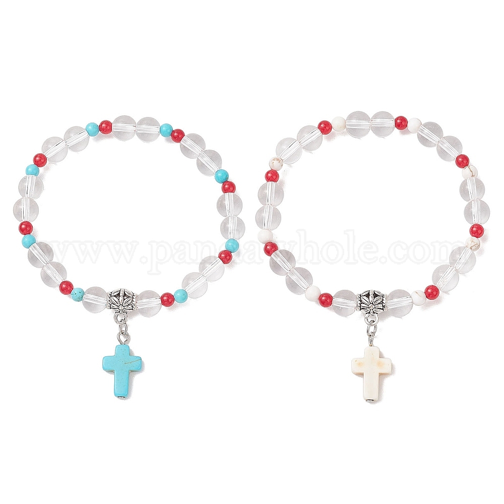 Браслеты с подвесками-крестиками из синтетической бирюзы, Браслеты из синтетического кварцевого кристалла и окрашенного натурального малайзийского нефрита для женщин