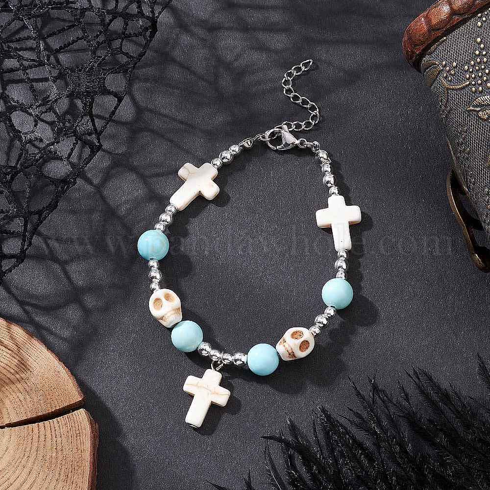 Браслеты с подвесками в виде черепа из латуни с синтетической бирюзой, платина