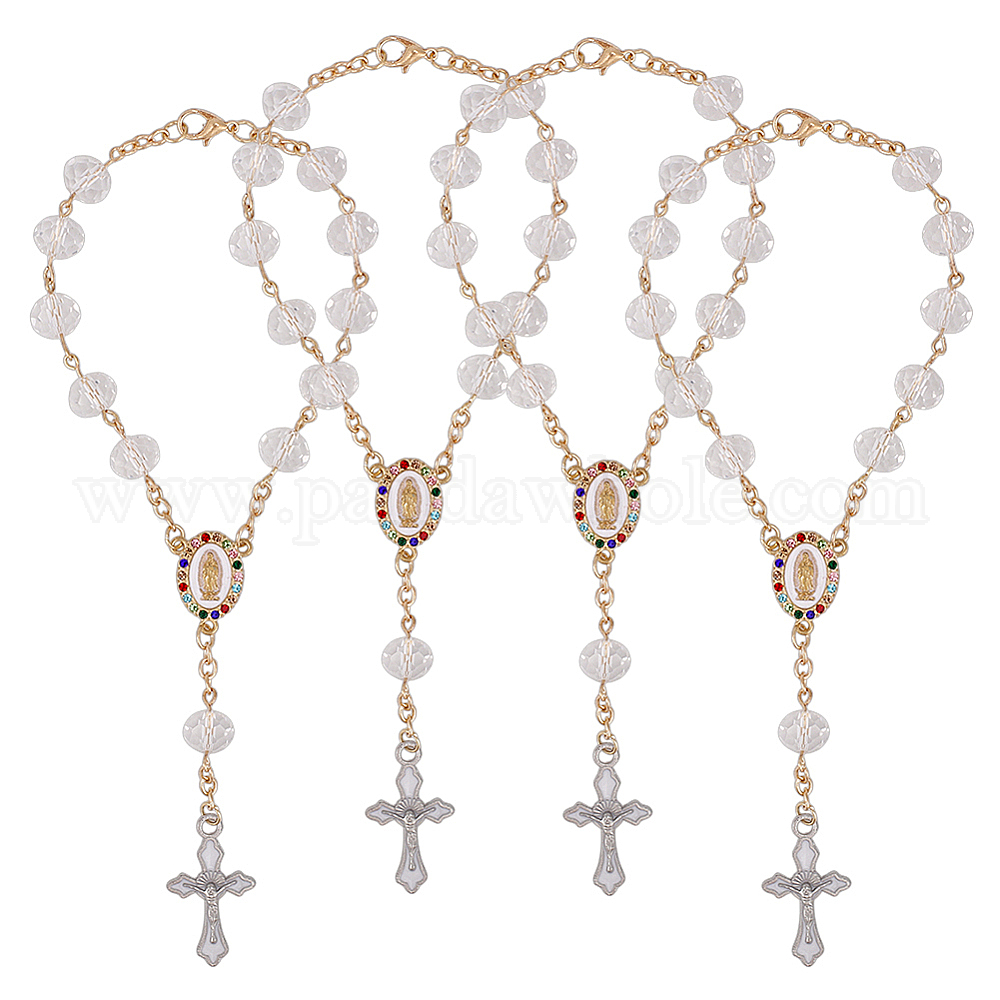 4шт. браслеты из сплава с эмалевым крестом и подвеской в виде Иисуса, браслеты из стеклянных бусин для женщин