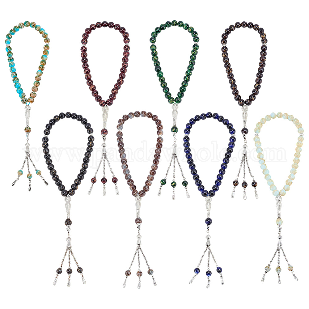 8шт 8 цвета сплава браслеты с подвесками, Эластичные браслеты из круглых бусин с эффектом кракелюра для женщин