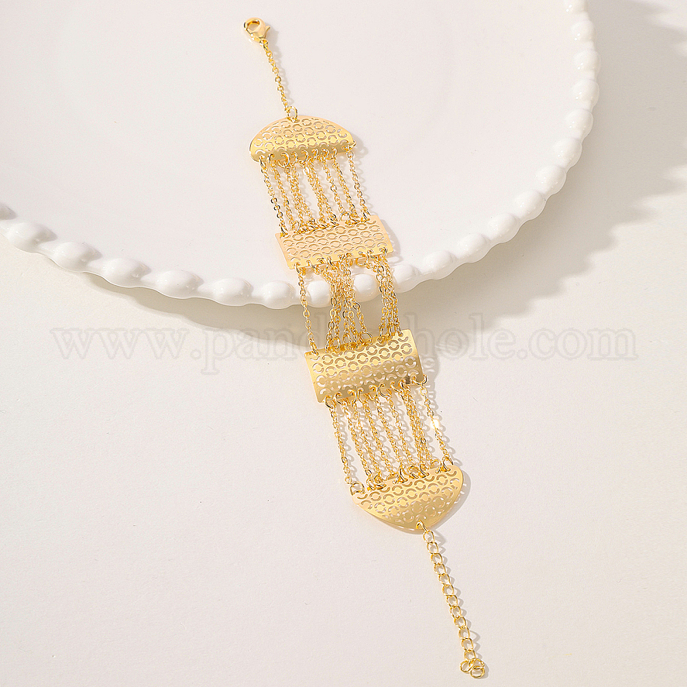 • Золотой Браслеты из полых латунных плоских круглых звеньев для женщин, золотые, внутренний диаметр: 7-1/4 дюйм (18.5 см)