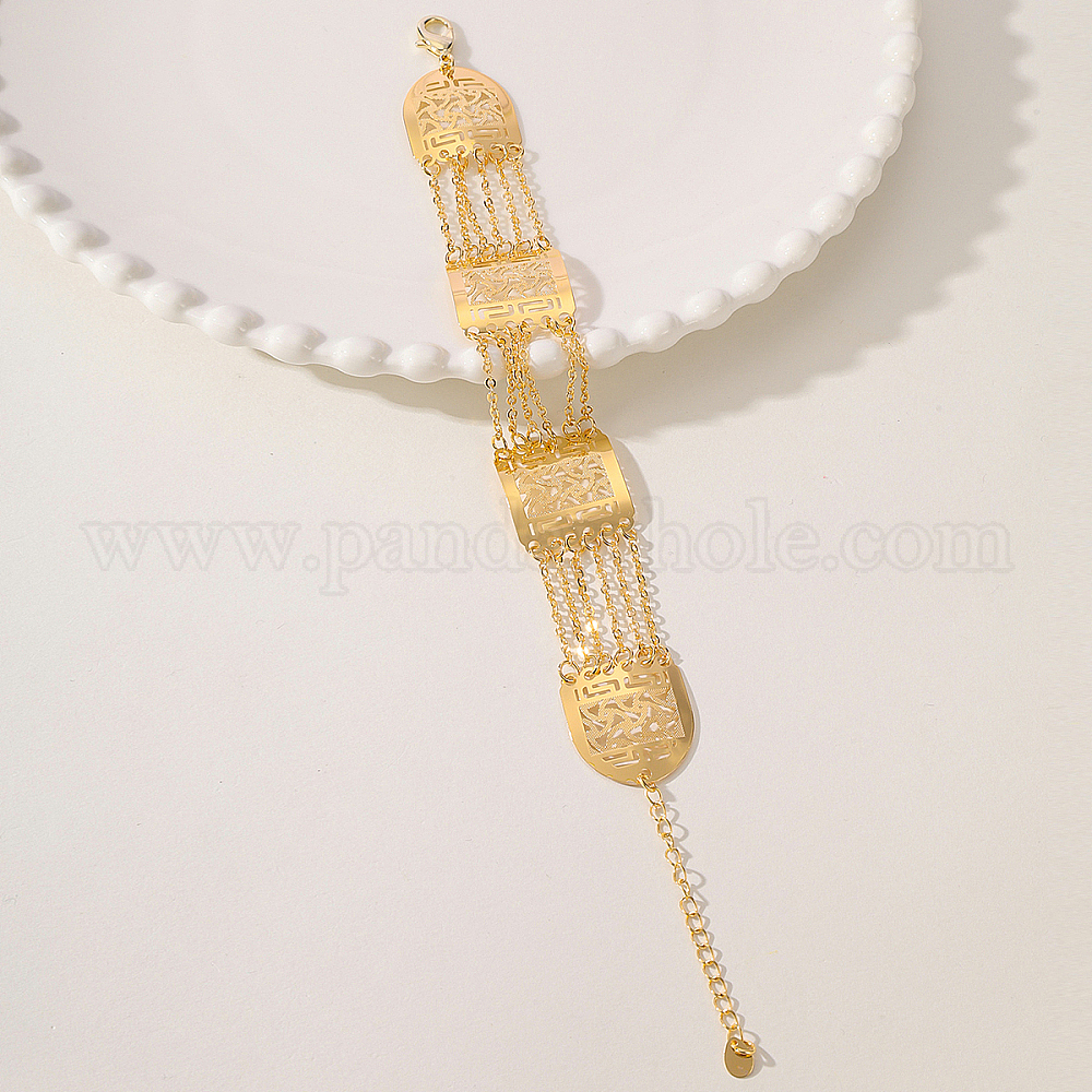 • Золотой Браслеты из полых латунных звеньев для женщин, золотые, внутренний диаметр: 7-5/8 дюйм (19.5 см)