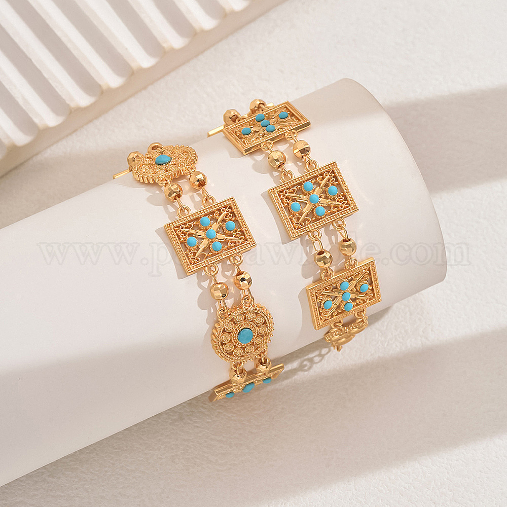 • Золотой Стильные браслеты из сплава смолы для женщин, прямоугольные, золотые, внутренний диаметр: 7-1/8 дюйм (18 см)