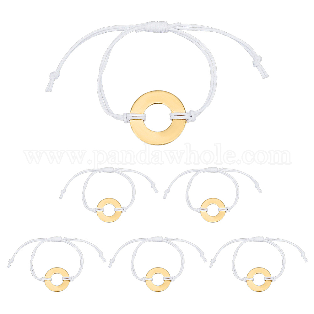 • Белый 6шт. браслеты из вощеного хлопкового шнура, с латунными прелестями, плоско-круглые, золотые, белые, внутренний диаметр: 3-1/2 дюйм (9 см)