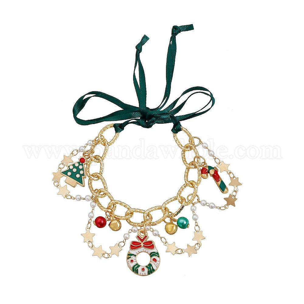 Рождественские браслеты с подвесками из сплава, эмали, искусственного жемчуга и искусственной кожи для женщин