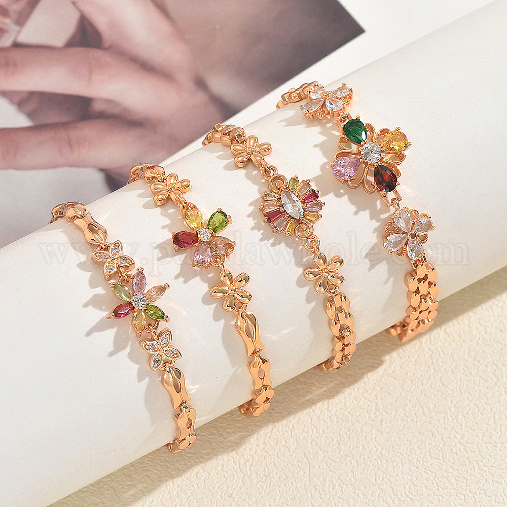 Женские браслеты из латуни с кубическими циркониями, цветок, золотые