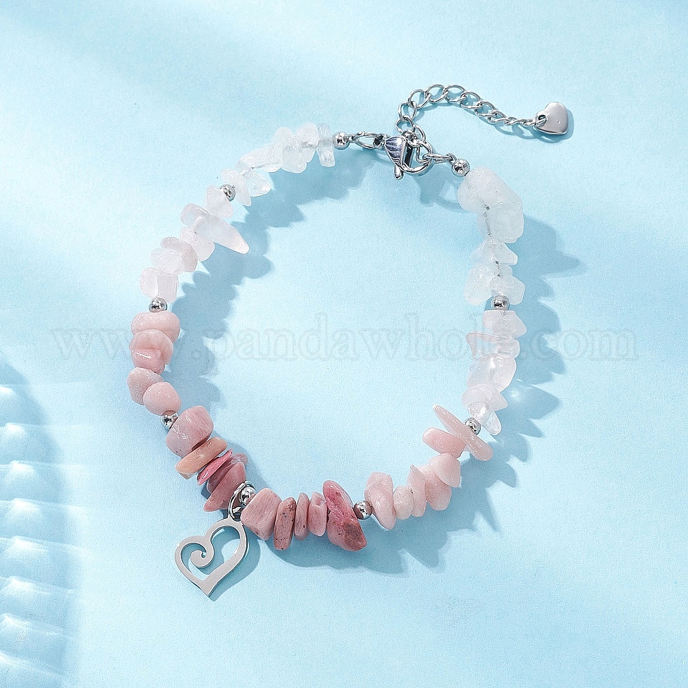 • Angel & Fairy Браслет из натуральных смешанных драгоценных камней с бусинами, 304 Браслет с подвесками из нержавеющей стали для женщин, ангел и фея, 7-1/8 дюйм (18 см)