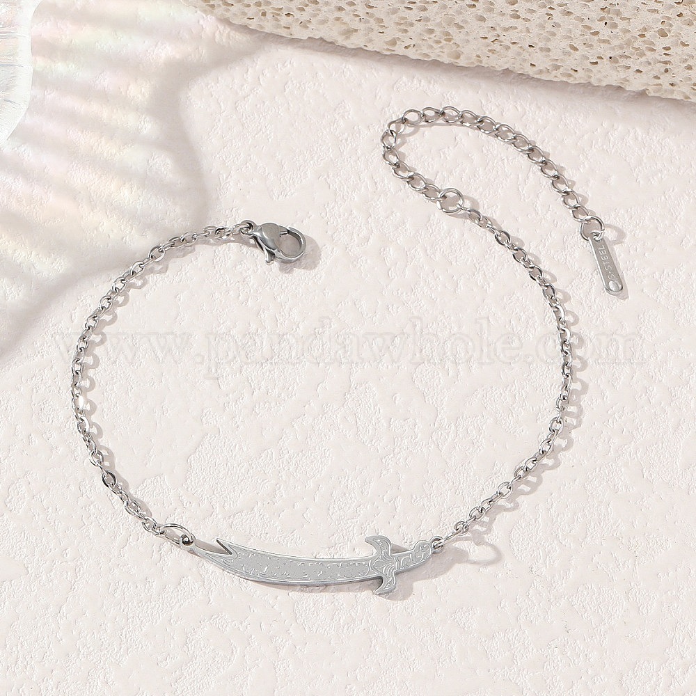 • Нержавеющая Сталь Цвет 304 из нержавеющей стали ссылка браслеты, браслеты-цепочки для женщин, меч, цвет нержавеющей стали, 7.09 дюйм (18 см)