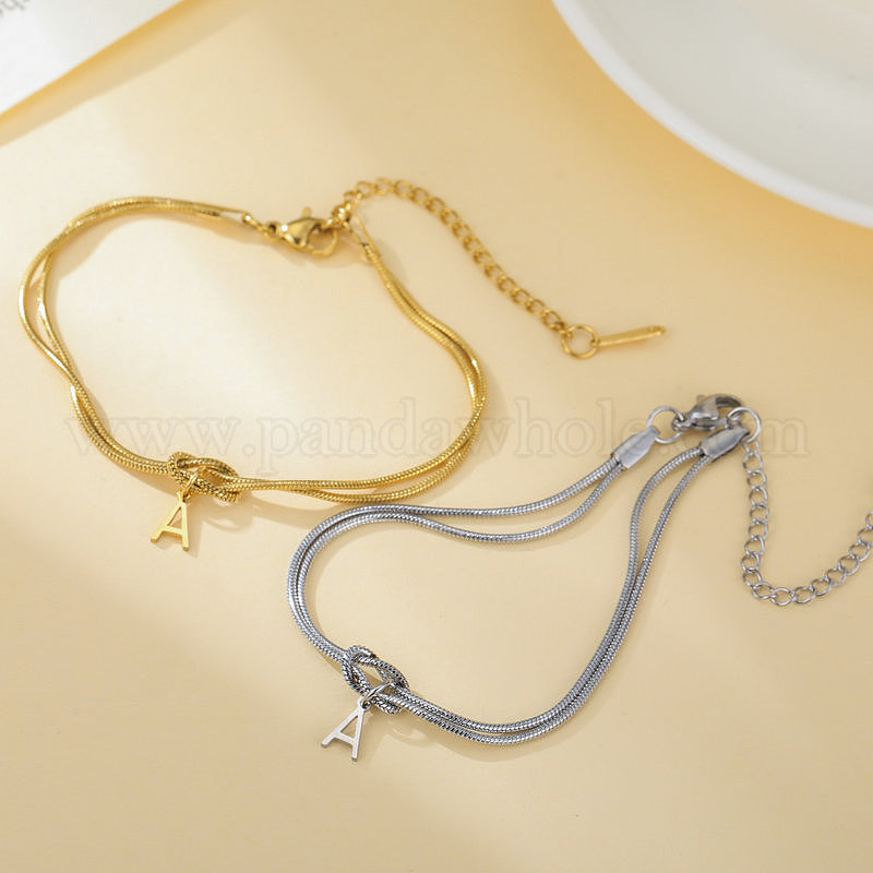 304 Браслеты с подвесками в виде инициалов из нержавеющей стали, браслеты из змеиной цепи для женщин