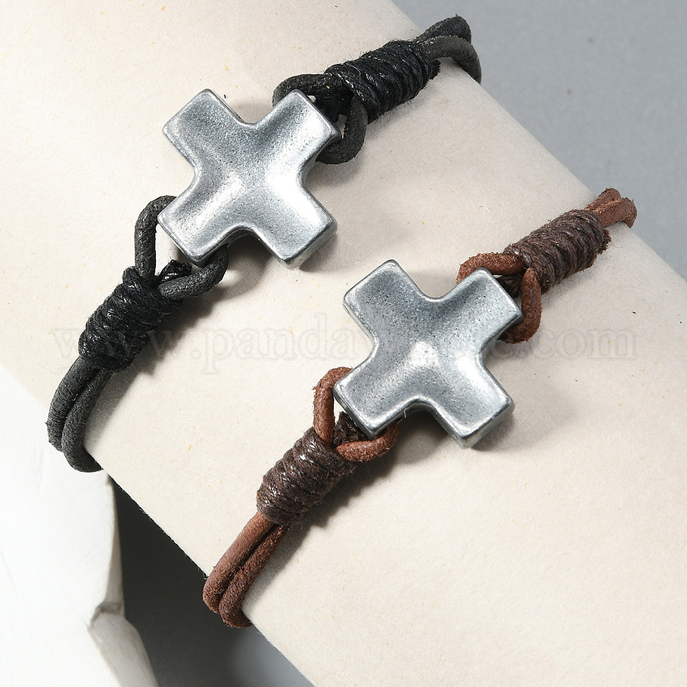 Минималистичные браслеты из сплава с перекрестными звеньями, украшения из искусственной кожи для мужчин, античное серебро