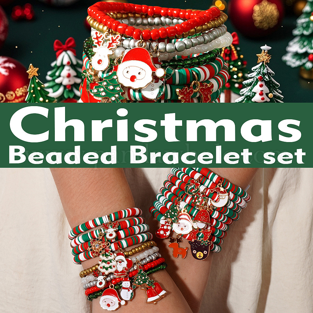 Рождественские 304 браслеты из нержавеющей стали с эмалированными подвесками, Набор украшений из полимерной глины и смолы для женщин.