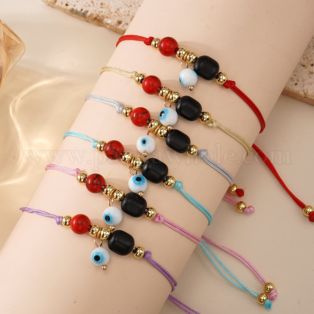 Богемные браслеты с подвеской в виде очков, символизирующих сглаз, регулируемые, Браслеты из плетеных бусин с синтетическим бирюзовым и латунным орнаментом для женщин и мужчин.
