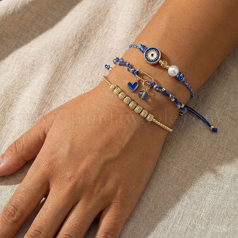 Браслеты из латуни и стеклянных бусин для женщин, сердце и сглаз (03A22G)