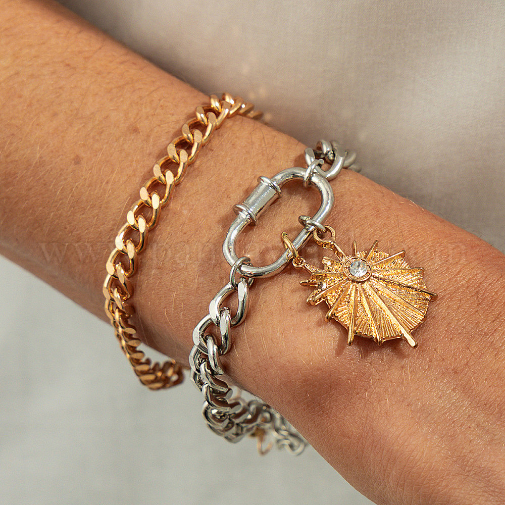 • Платиновый & Золотой 2шт. 2 стили браслетов из сплава, железа и хрустальных стразов с подвесками и браслетов-цепочек для женщин, солнце, платиной и золотом, 6.30 дюйм (16 см)