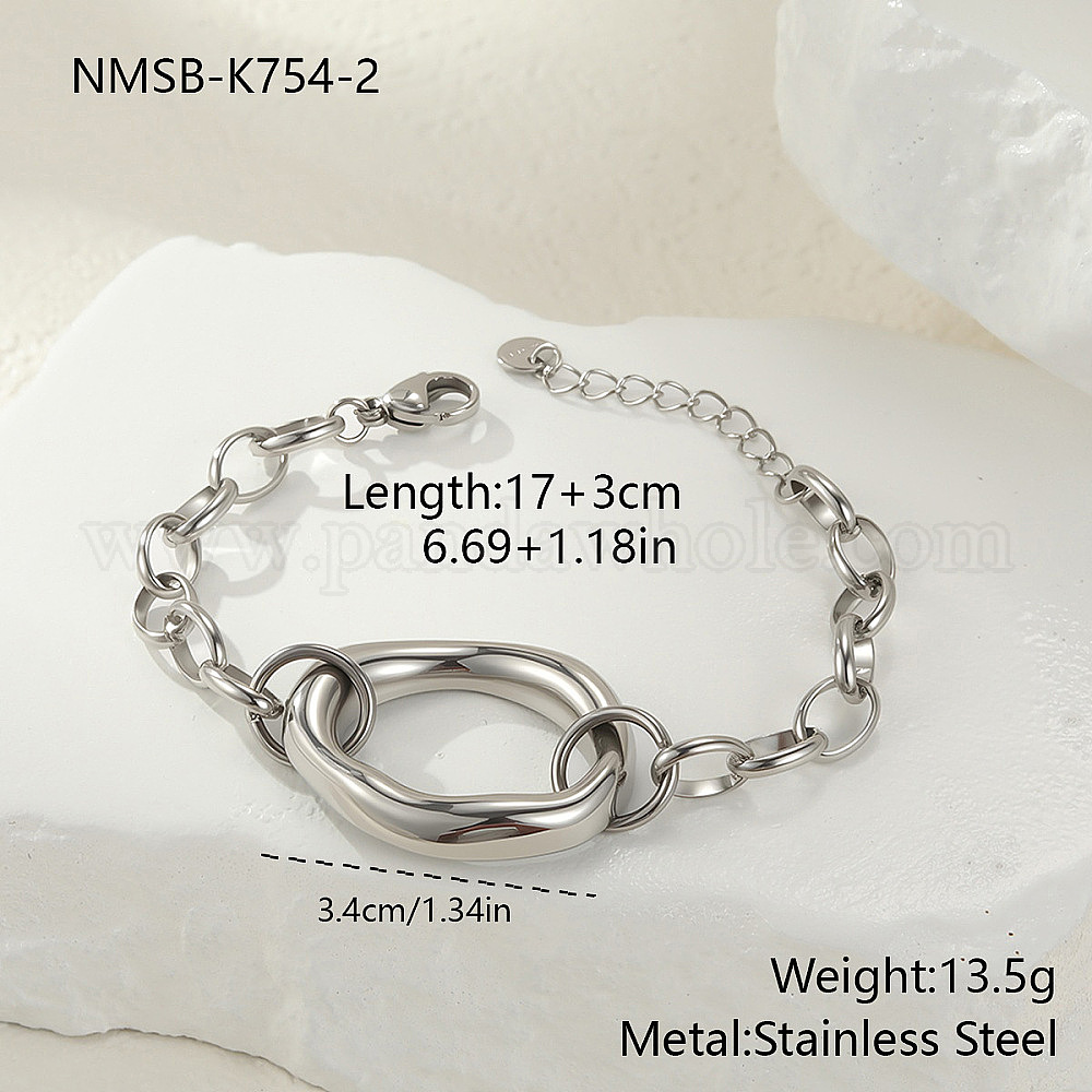 • Нержавеющая Сталь Цвет 304 из нержавеющей стали ссылка браслеты, браслеты-цепочки для женщин, овальные, цвет нержавеющей стали, 6.69 дюйм (17 см)