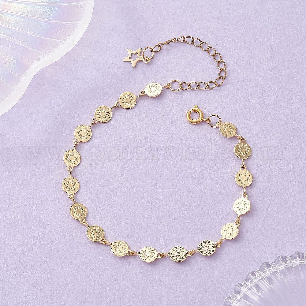 • Золотой Латунные плоские круглые браслеты с узором в виде солнца., золотые, 7.28 дюйм (18.5 см)