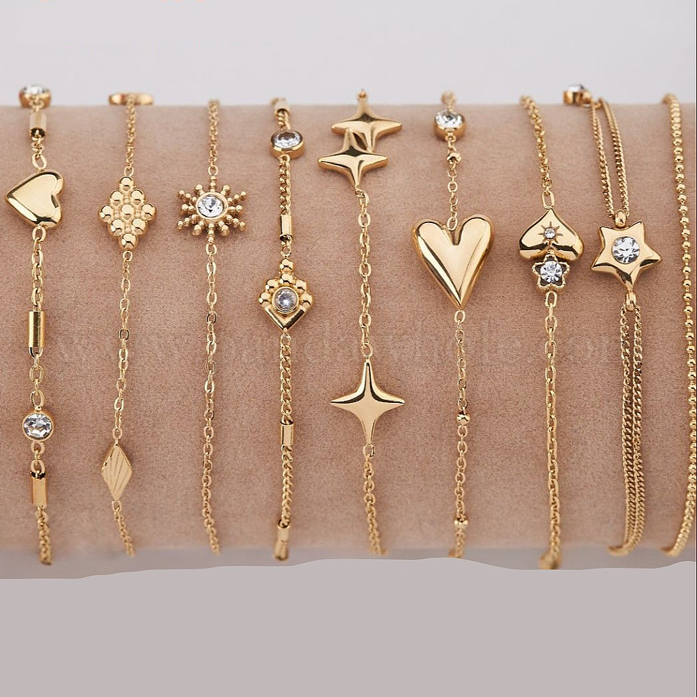 • Звезда Латунные браслеты с микропаве из чистого кубического циркония, браслеты-цепочки для женщин, золотые, звезда, 6.69 дюйм (17 см)