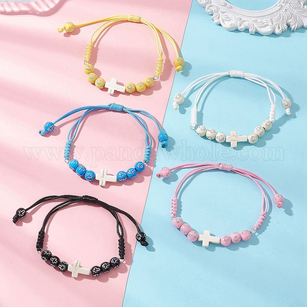 Браслет из синтетических бирюзовых бусин и круглых акриловых бусин, соединенных между собой., Регулируемый плетеный корейский браслет из вощеного полиэстера для женщин и мужчин