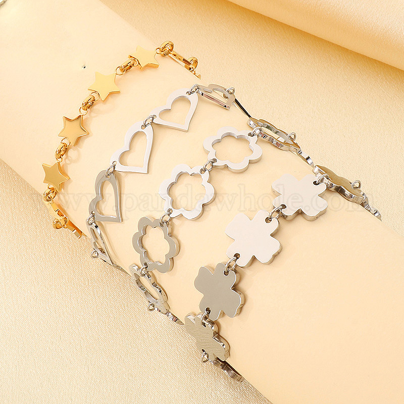 • Цветок 304 женские браслеты-цепочки со звеньями из нержавеющей стали, цвет нержавеющей стали, цветок, 7.87 дюйм (20 см)