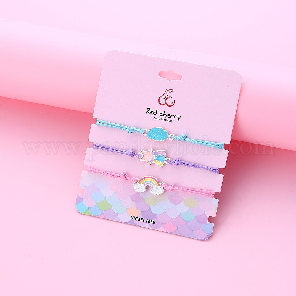 3шт. браслеты из сплава с эмалевыми звеньями, регулируемые плетеные браслеты из вощеного шнура для женщин, звезда, радуга и облако, золотые, без никеля