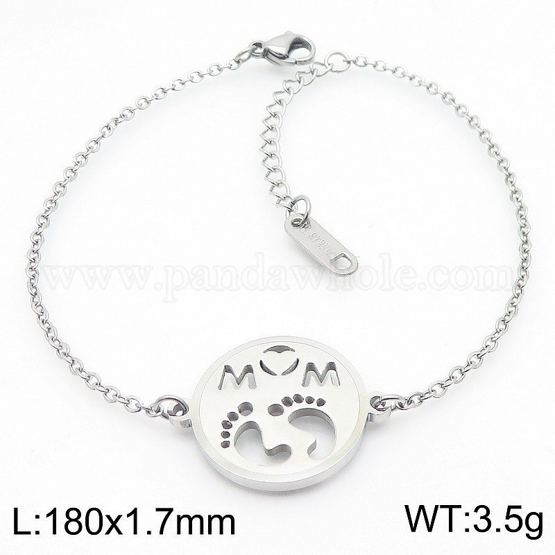 304 из нержавеющей стали ссылка браслеты, браслеты-цепочки для женщин, плоская круглая поверхность с отпечатком лапы и словом «мама».