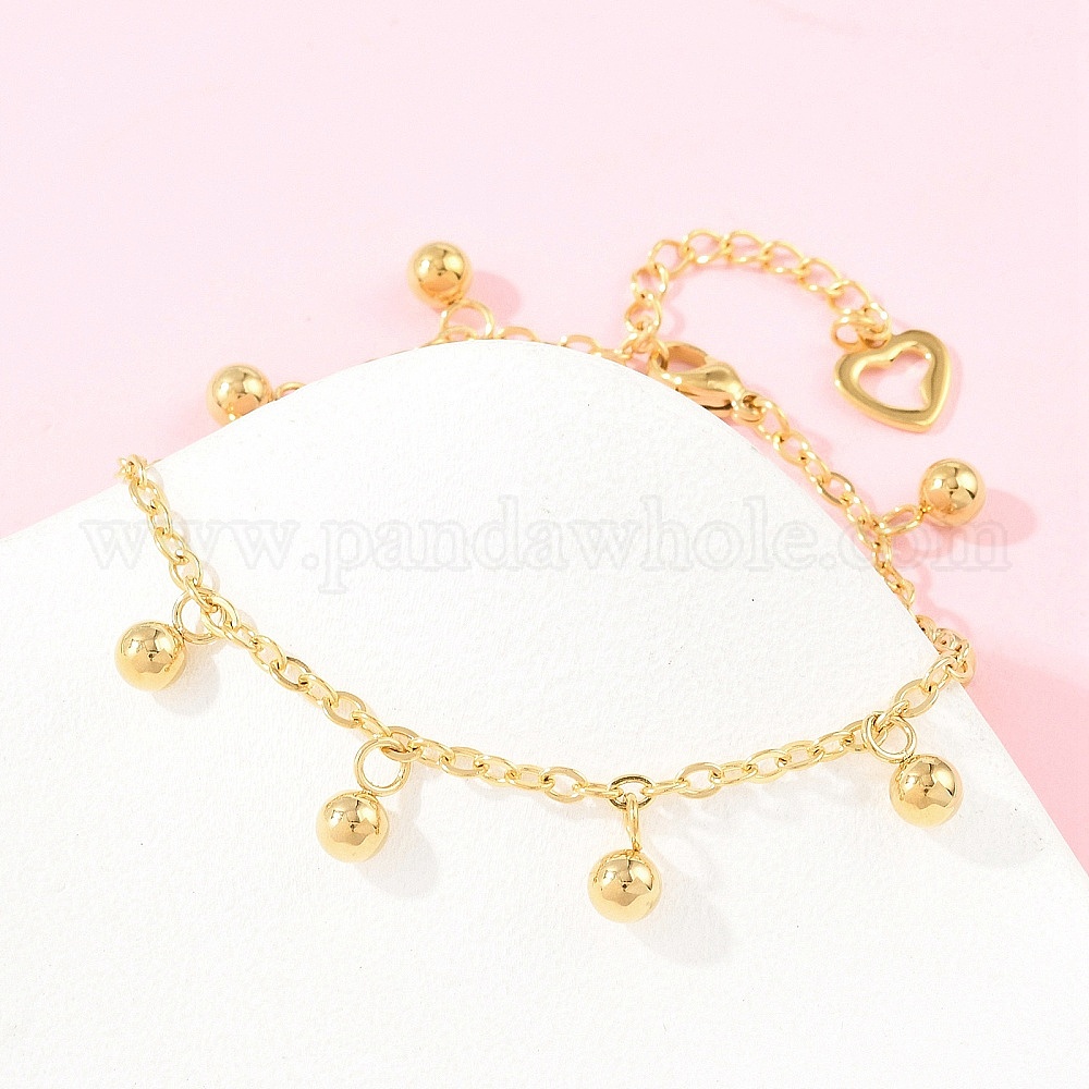 304 из нержавеющей стали шарм браслеты, с 201 стальными бусинами, браслеты из кабельной цепи, ионное покрытие (ip)