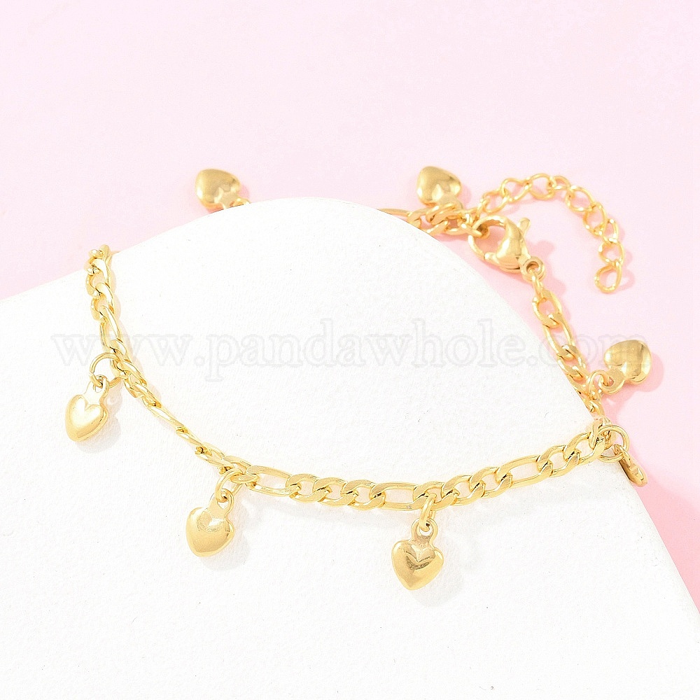 • Золотой 304 из нержавеющей стали шарм браслеты, сердце, браслеты из кабельной цепи, ионное покрытие (ip), золотые, 6.77 дюйм (17.2 см)